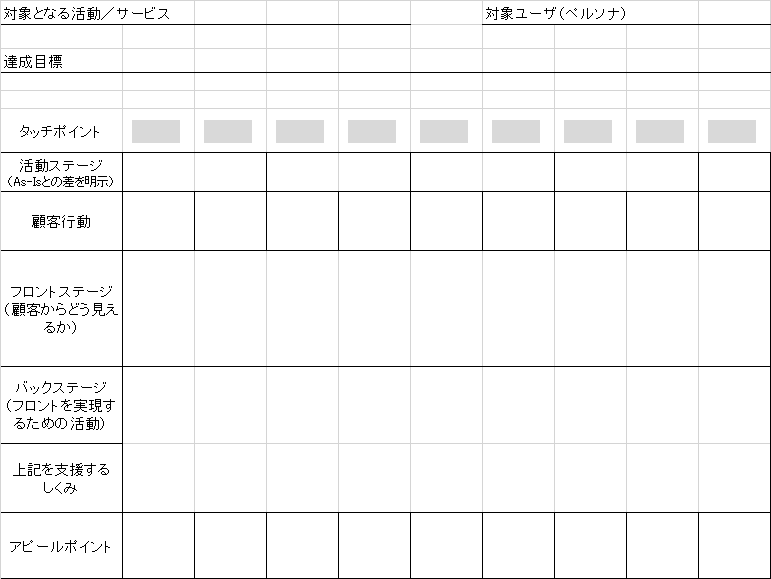 最下行の「アピールポイント」はカスタマージャーニーマップからの移植です。